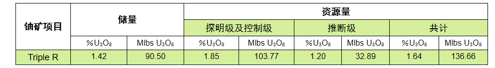 2016年,中廣核礦業收購Fission Uranium Corp(多倫多證券交易所代碼:FCU.TO)19.99%股權,并獲得20%的天然鈾產品包銷權及15%的額外包銷選擇權。Fission Uranium Corp是鈾礦行業最成功的勘探公司之一,公司擁有大型鈾礦項目PLS項目以及待進一步開發的Triple R礦床。